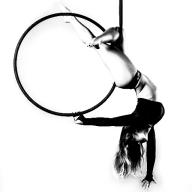My specialization is aerial hoop (also called lyra or aerial ring). The aerial hoop is a circus discipline with a hanging, circular steel apparatus, able to spin or swing.